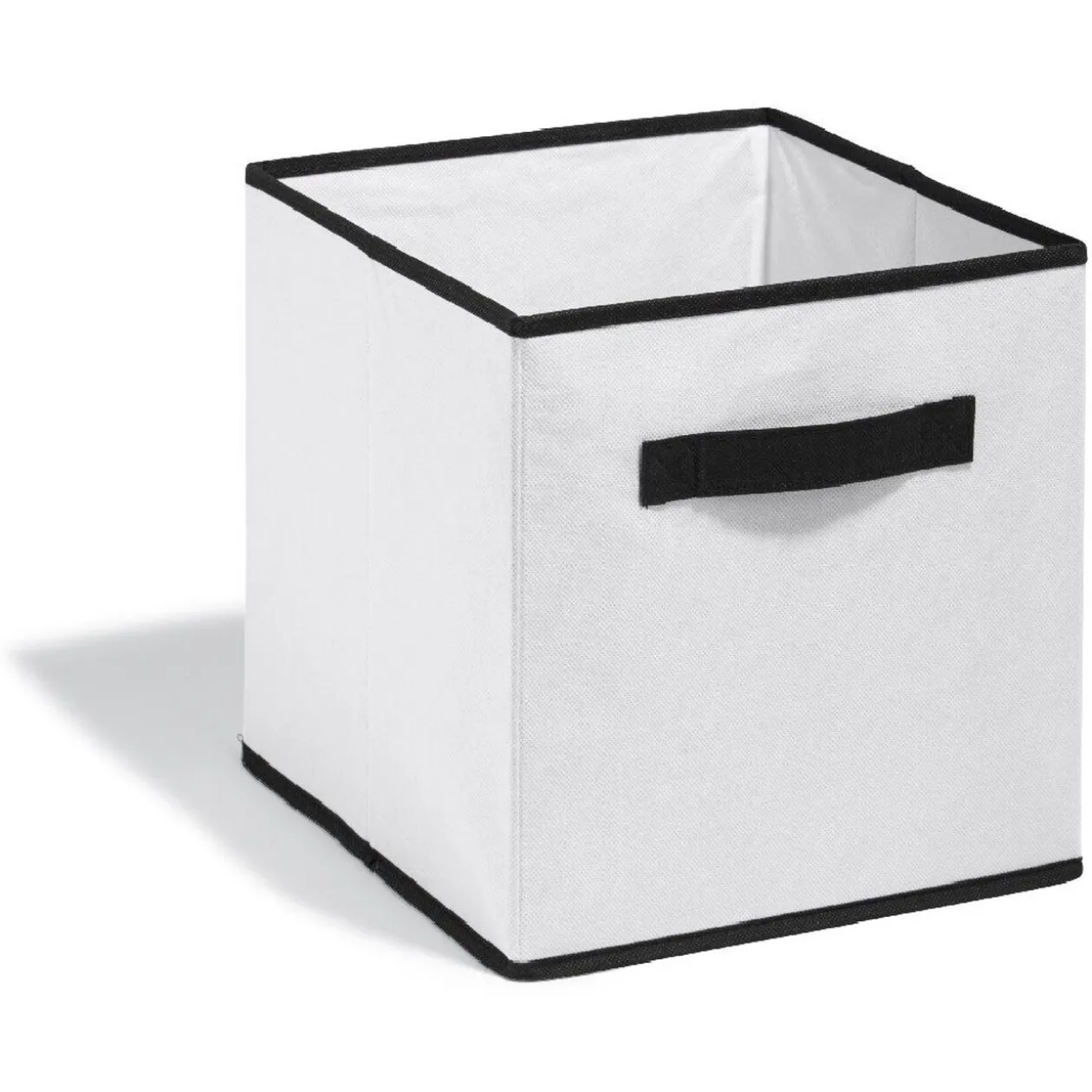 Panière forme cube blanche et contour noir, dim.27x27x27 cm, tissus et fond cartonné.