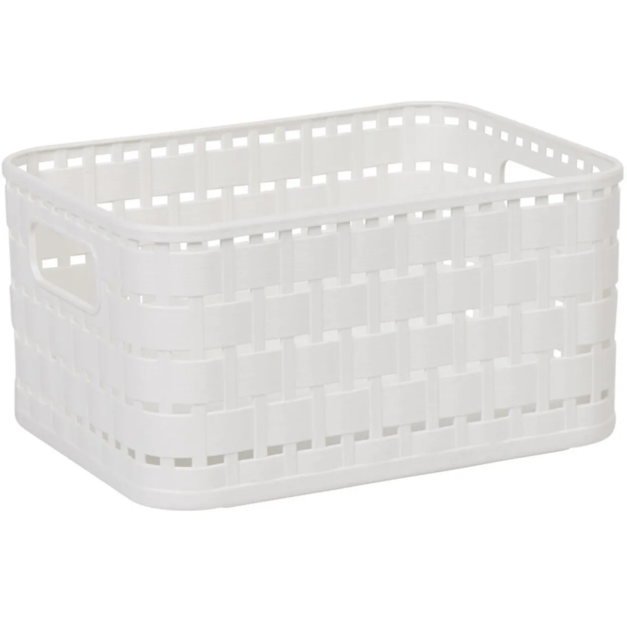 Panière blanche en plastique effet tressé d’une contenance de 2 litres.
