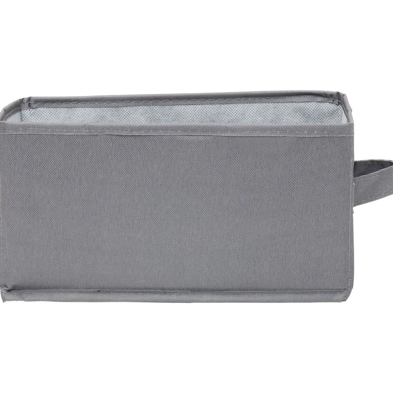 Panière de rangement en polyester uni gris, idéale pour ranger de petits objets, les sous-vêtements ou les accessoires de bébé.