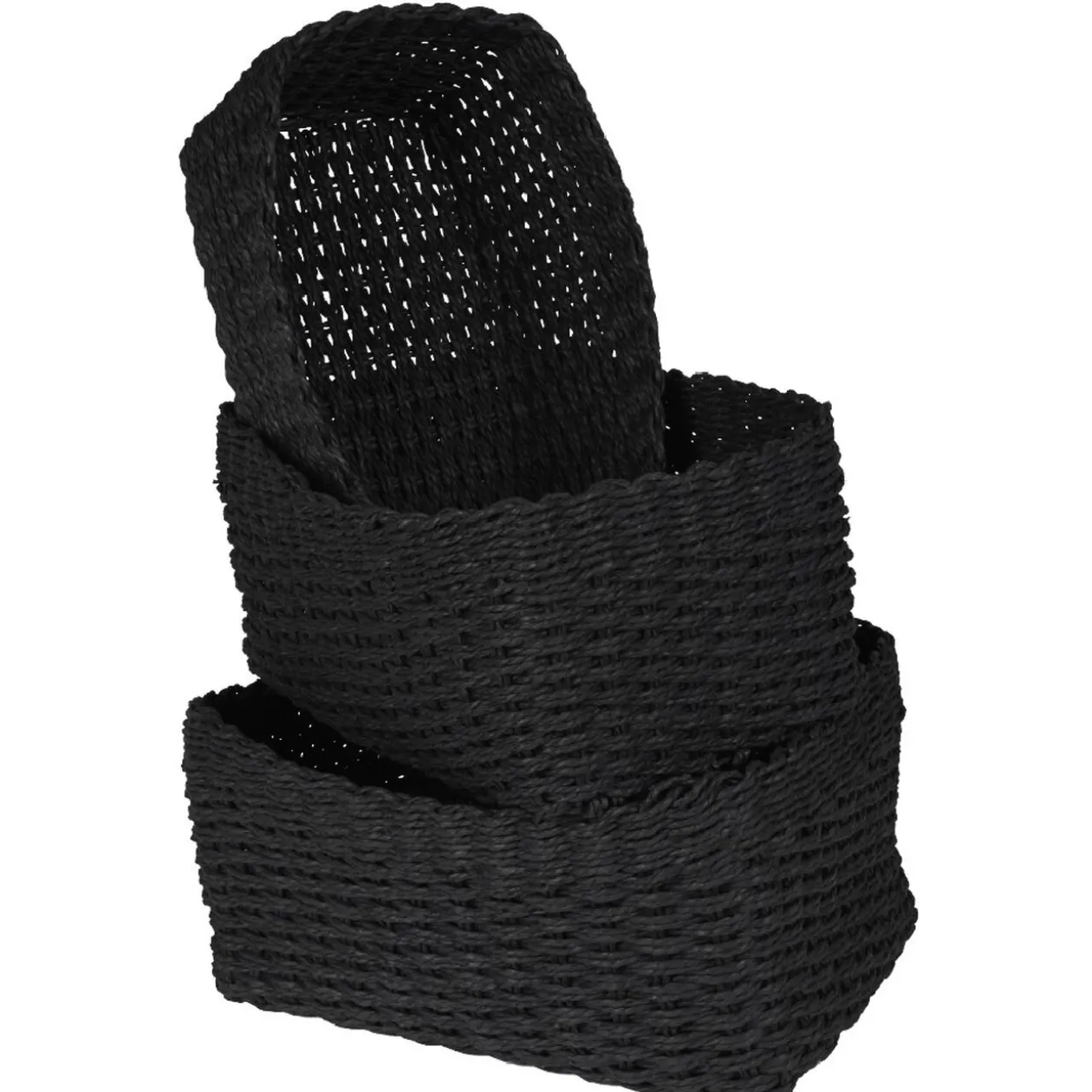 Déco et pratique, optimisez votre rangement avec ce lot de 3 panières noires en corde de papier tressé et conçues en 3 tailles pour des étagères parfaitement organisées.
