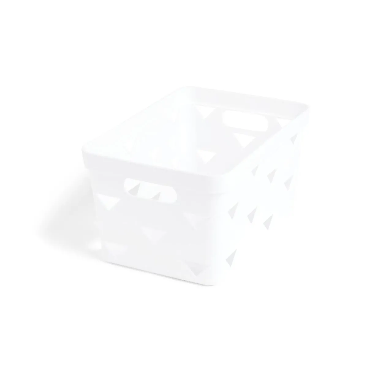 De taille moyenne, cette panière en plastique blanc est idéale pour ceux qui cherchent à améliorer le rangement de leur intérieur tout en gardant une esthétique soignée et organisée.