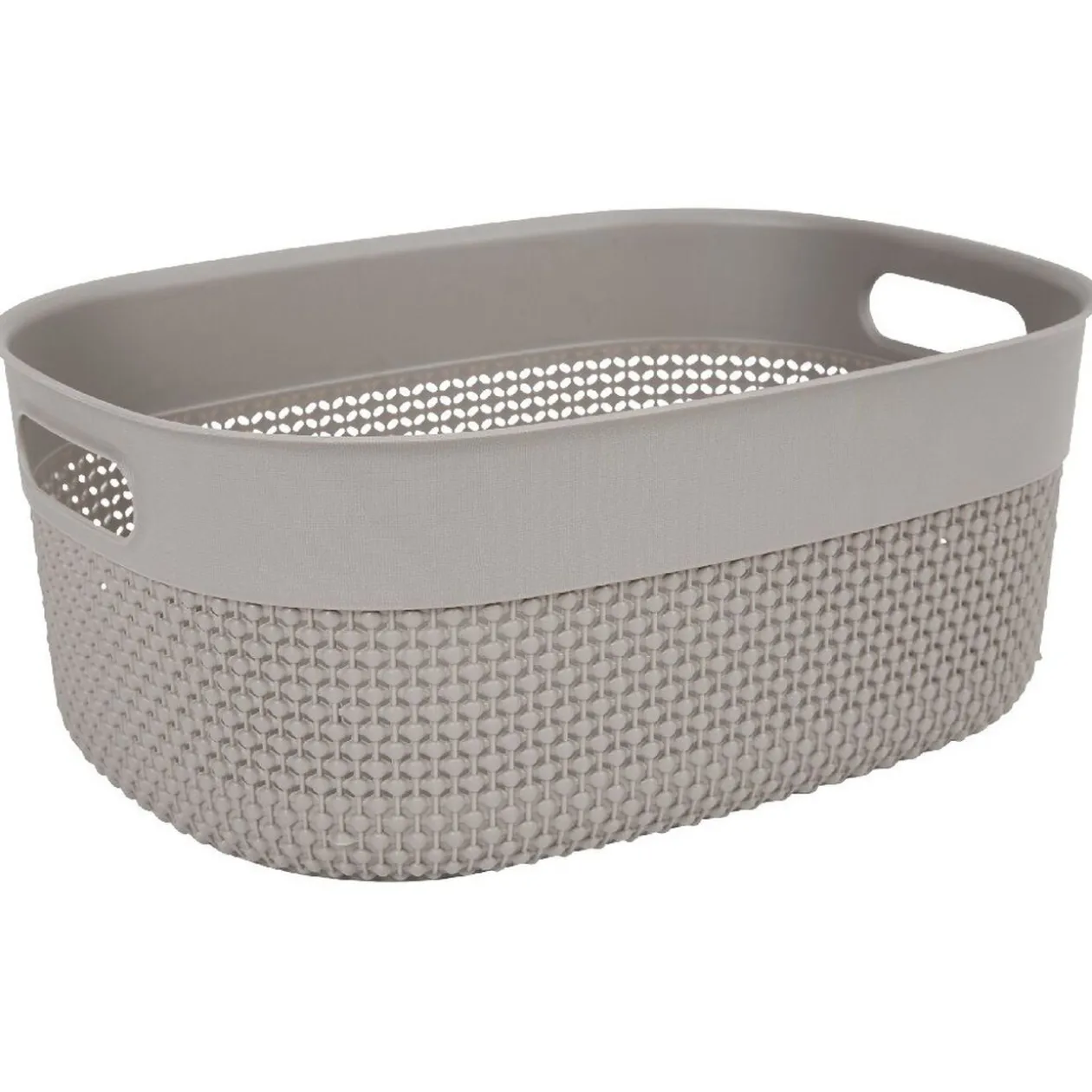 Panière de rangement en plastiqued’une contenance de 12 L. Coloris : Taupe, motif légèrement ajouré.