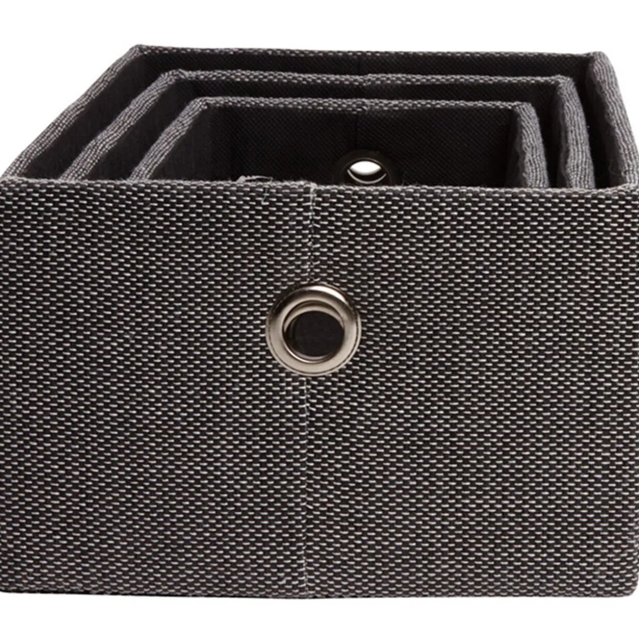 Lot de 3 panières déco grises, empilables, pratiques et peu encombrantes.