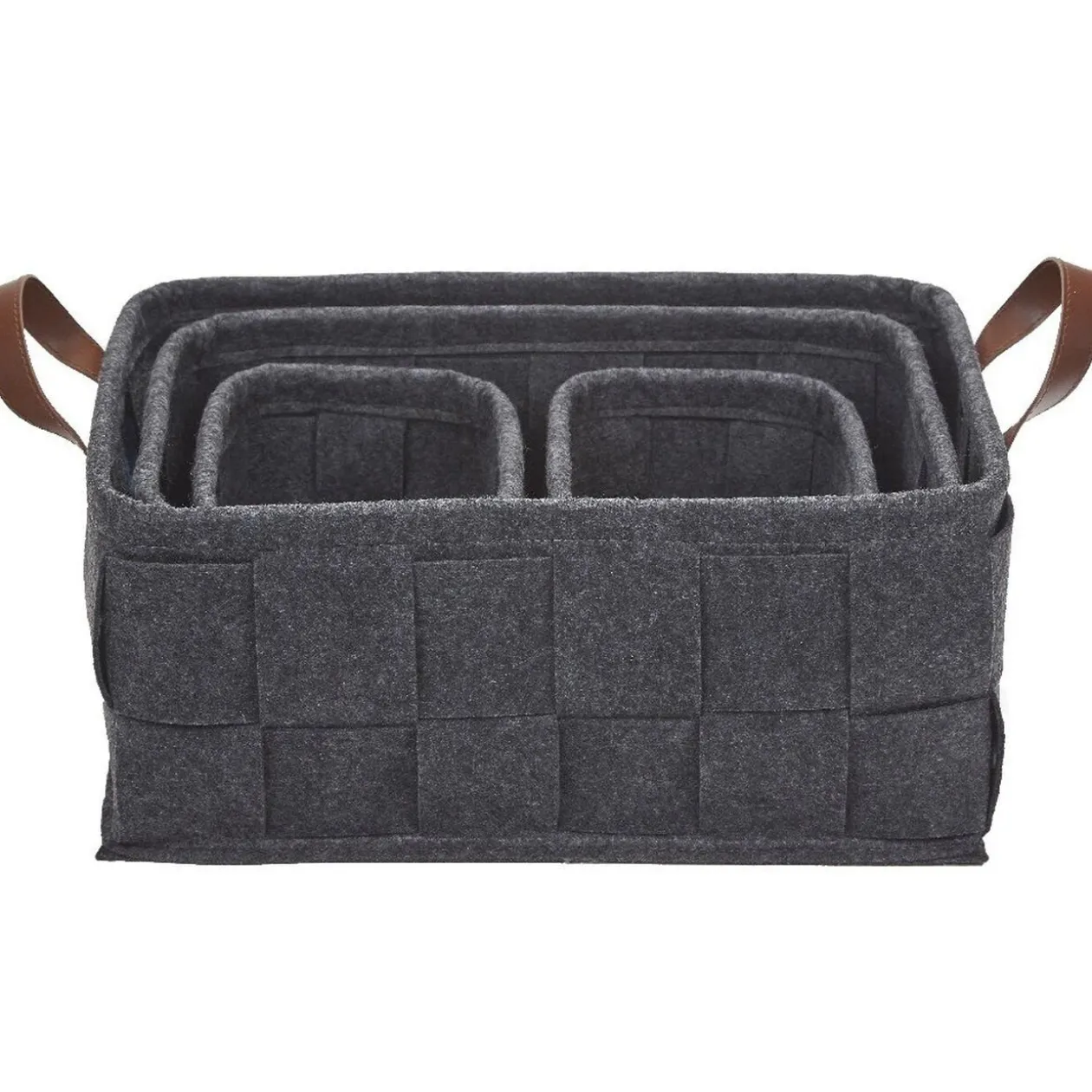 Ce lot de 4 panières grises en feutrine tressée fera une solution de rangement parfaite pour les petits accessoires sur une étagère ou un meuble de votre intérieur.