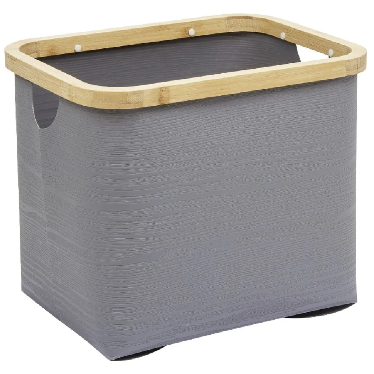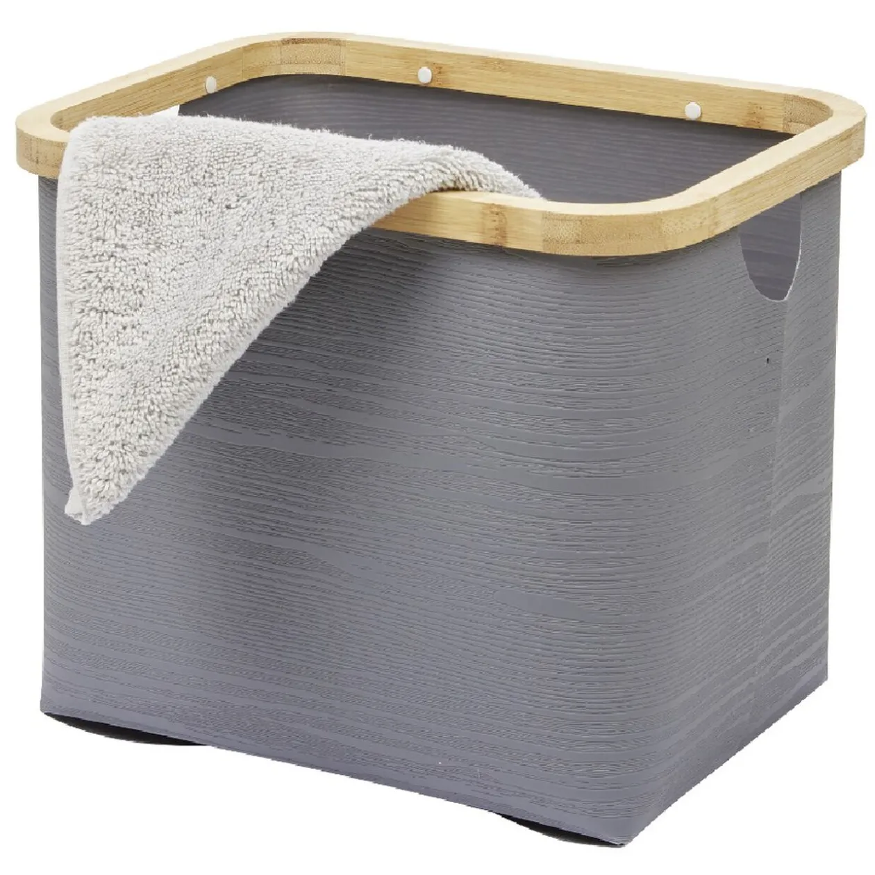Améliorer l’organisation de votre buanderie avec cette panière grise dotée d’armature en bambou.