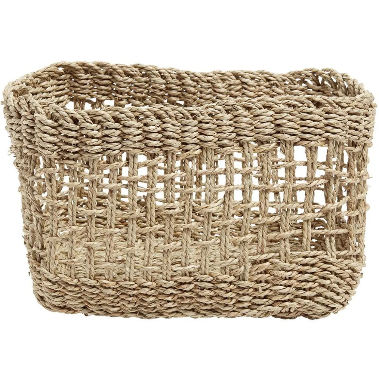 Panière moyen modèle en jacinthe d’eau tressée couleur naturelle.