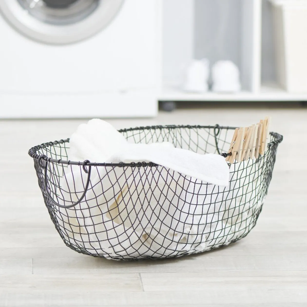 Ce produit existe en 6 coloris: Blanc/Noir/Jaune/Bleu/Beige/Rose, coloris aléatoire selon disponibilité en magasin. – Dimensions: l 22,5 x h 38 x L 30 cm. – Matériel: Fer.