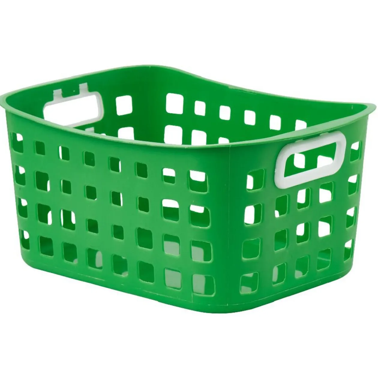 Cette panière de rangement en plastique vous offre des dimensions compactes idéales pour organiser divers objets.Disponible en trois couleurs vives (bleu, rose ou vert) elle ajoute une touche de gaieté et de praticité à tout espace.