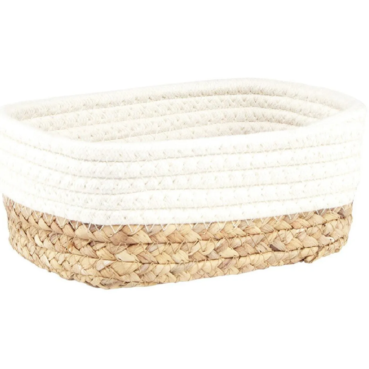 Panière rectangulaire coton et jacinthe blanc et naturel x3