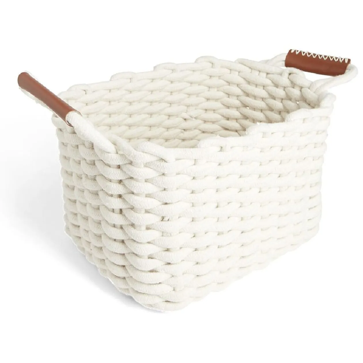 Transformez votre espace avec cette grande panière en tricot de coton blanc.