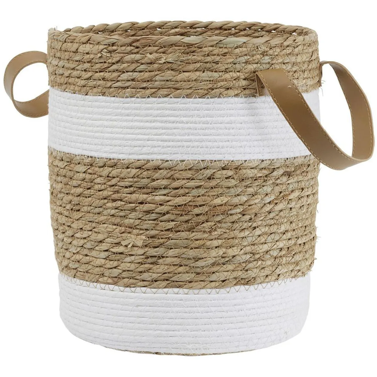 Cette panière ronde en jute naturel avec 2 larges bandes combine rangement et décoration avec style. Très utile pour rassembler divers objets et accessoires dans l’entrée, une chambre ou la salle de bain.
