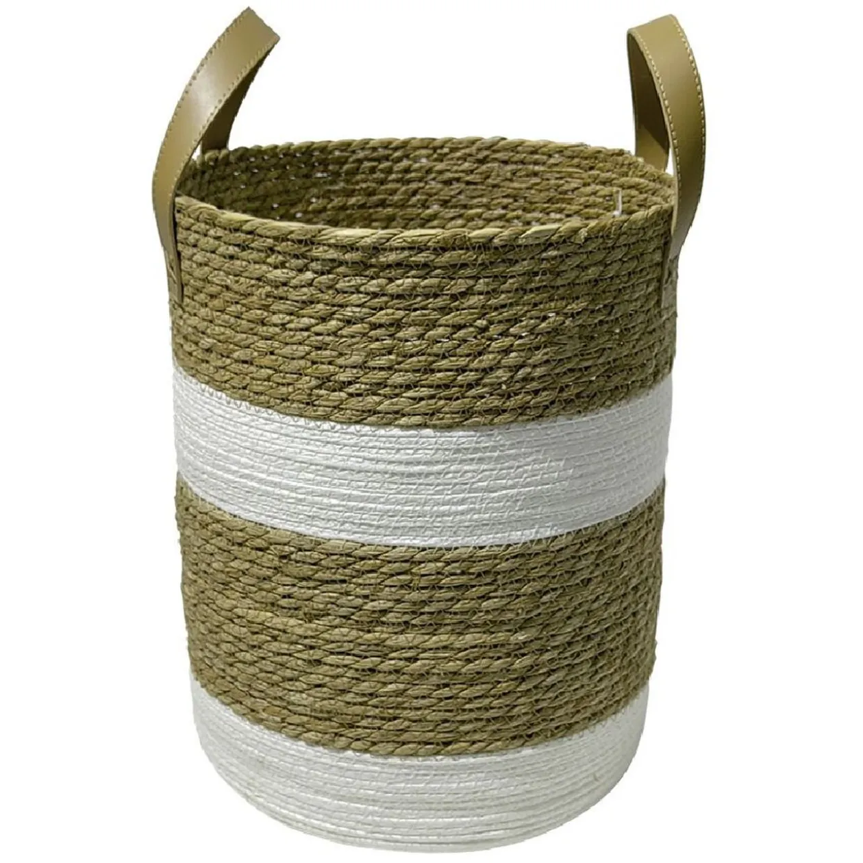 Cette panière ronde en jute naturel avec 2 larges bandes combine rangement et décoration avec style. Très utile pour rassembler divers objets et accessoires dans l’entrée, une chambre ou la salle de bain.