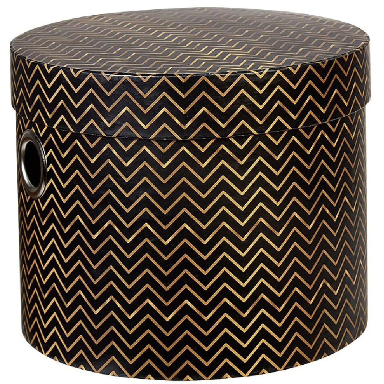 Lot de 3 panières rondes en polyester avec couvercle de couleur marron au motif zig-zag doré.