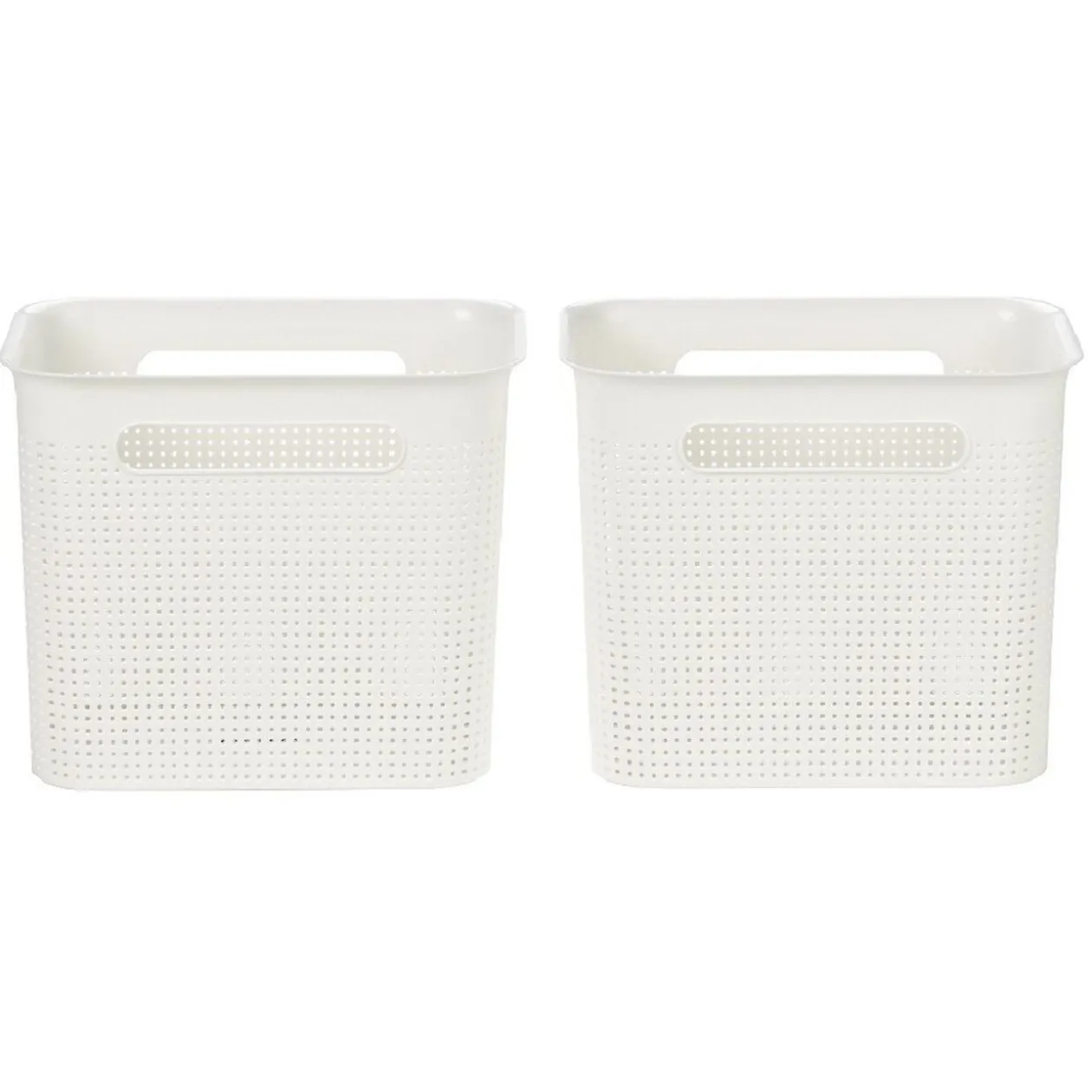 Lot de deux paniers à linge blancs design perforé, d’une capacité de 7 litres chacun. Essentiellement utilisés pour transporter le linge.
