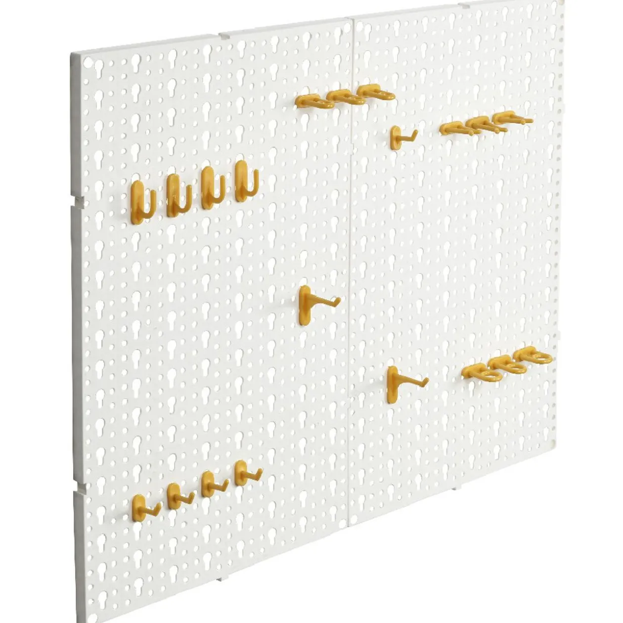 Gagnez de l’espace de rangement avec ce panneau mural perforé, facile à installer grâce à son kit de fixation inclus. Les 22 crochets assortis, clipsables à l’infini vous permettront de suspendre n’importe quelle fourniture. Accrochez-y les outils, les ustensiles de cuisine ou encore les accessoires de coiffure.