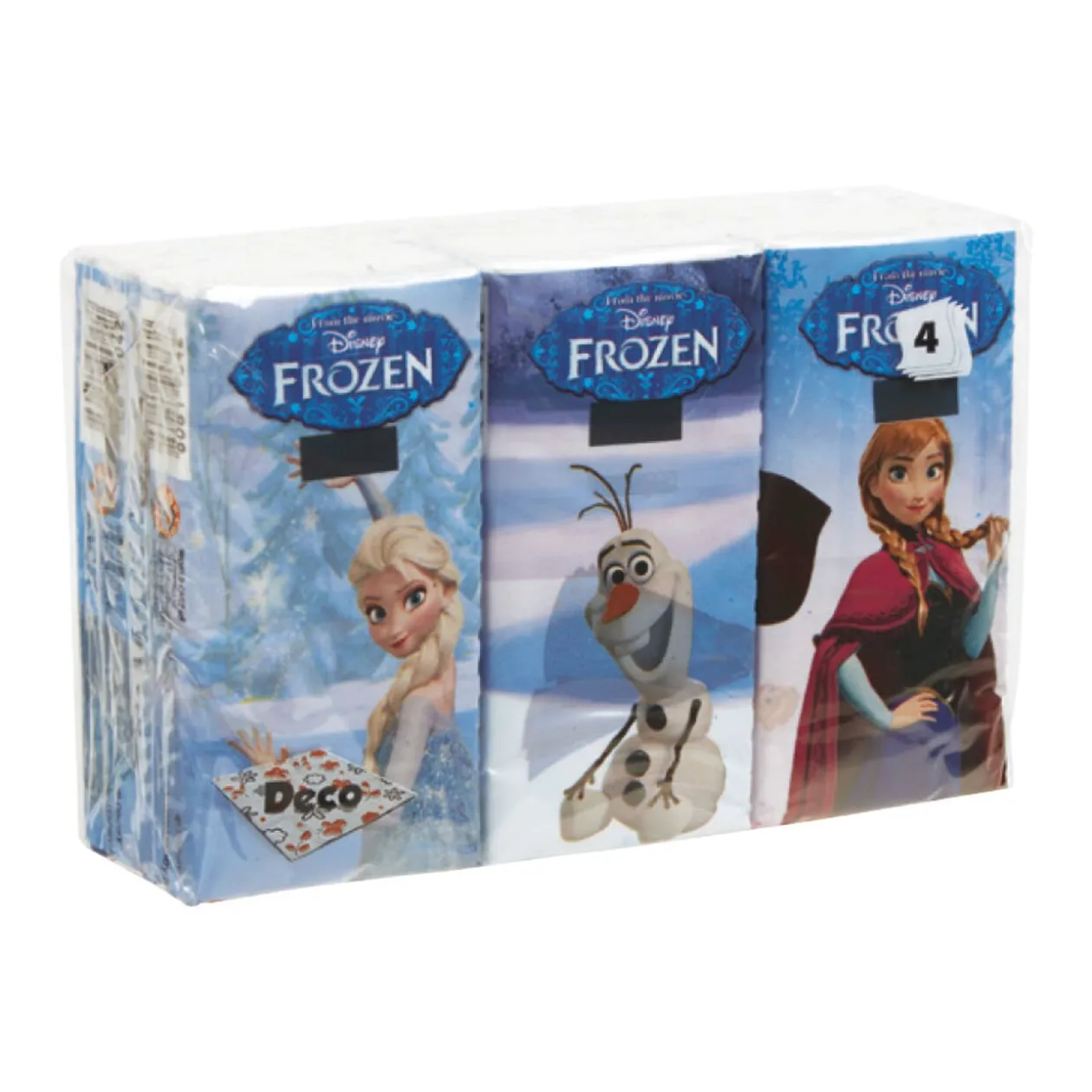 Lot de 6 paquets de mouchoirs en papier à l’effigie des personnages de la Reine des neiges.