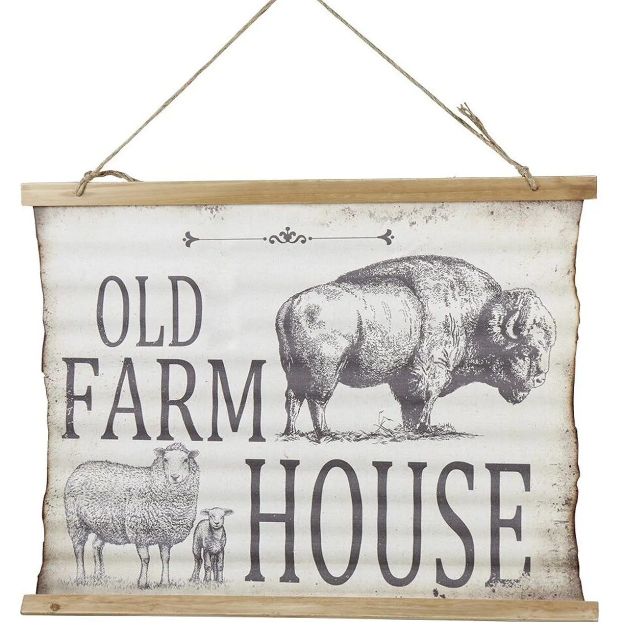 Parchemin de décoration avec inscription « Old Farm House » et motifs animaux.