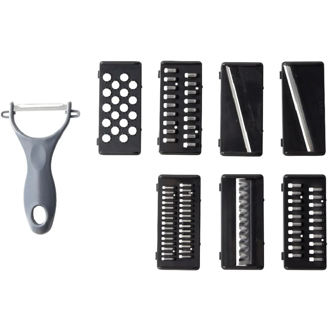 Le kit fait aussi office de mandoline grâce à ses 9 accessoires inclus, vous permettant de découper et d’ajuster la découpe selon vos besoins.