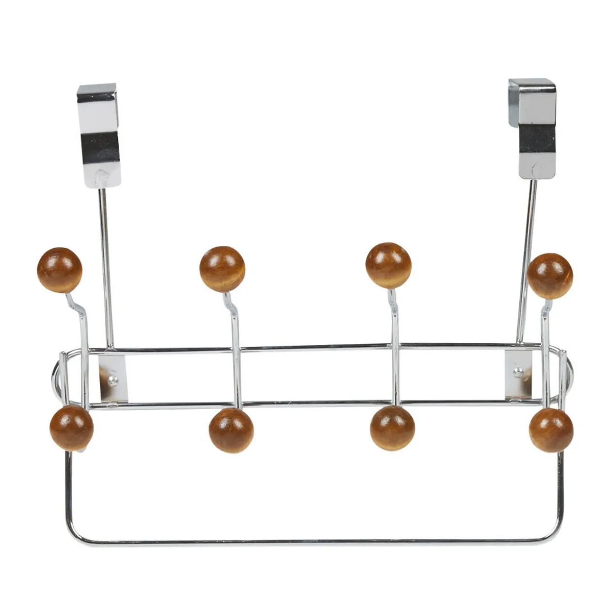 Patère de porte 4 crochets en forme de boules en bois, dim. 28×12,3xh.24 cm, métal.