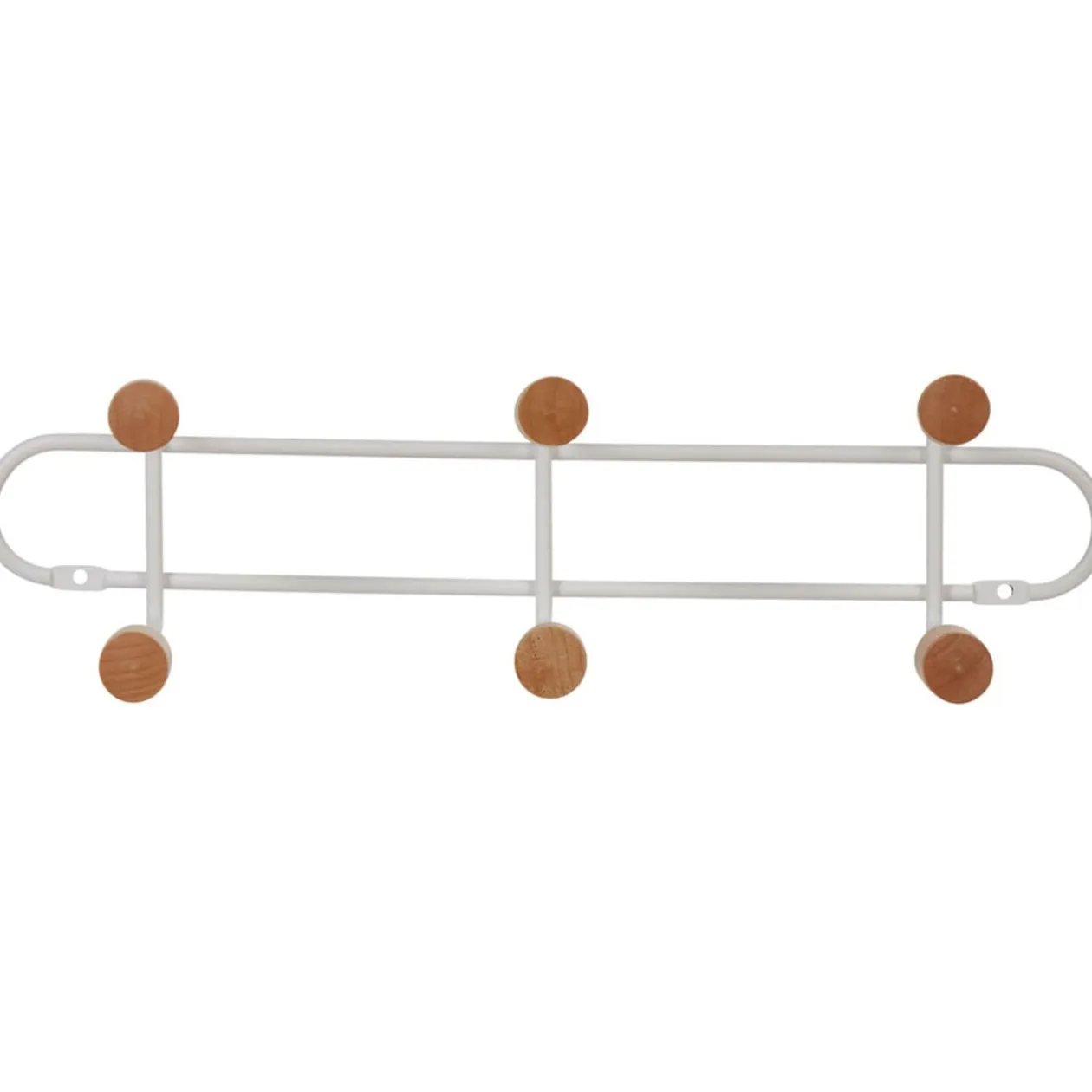 Optez pour un design sobre à la touche naturelle avec cette patère murale blanche en métal et ses 6 crochets en bois. Fixation simple et rapide.