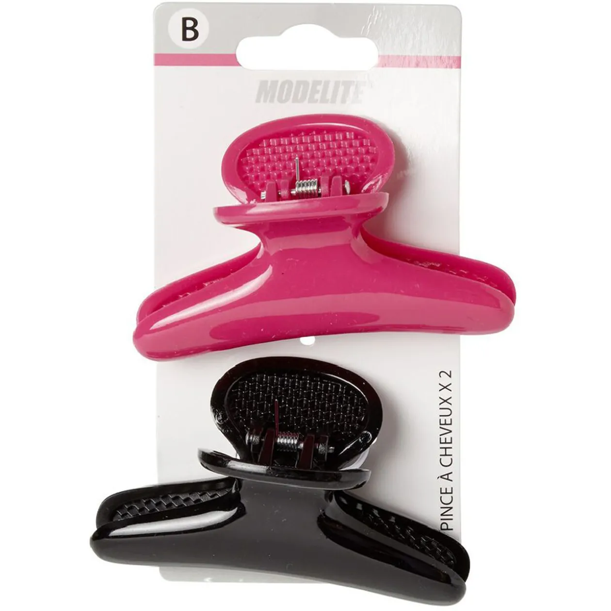 Lot de 2 pinces crocodiles en plastique uni brillant. Longueur : 9 cm