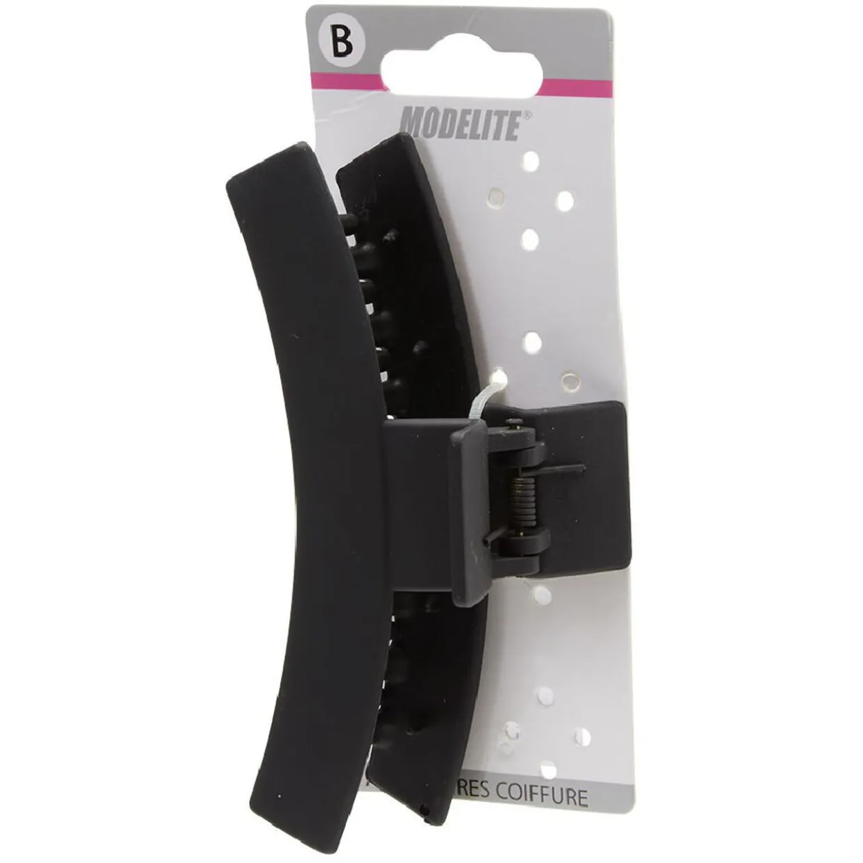 Pince crocodile en plastique uni noir mat. Longueur : 11 cm