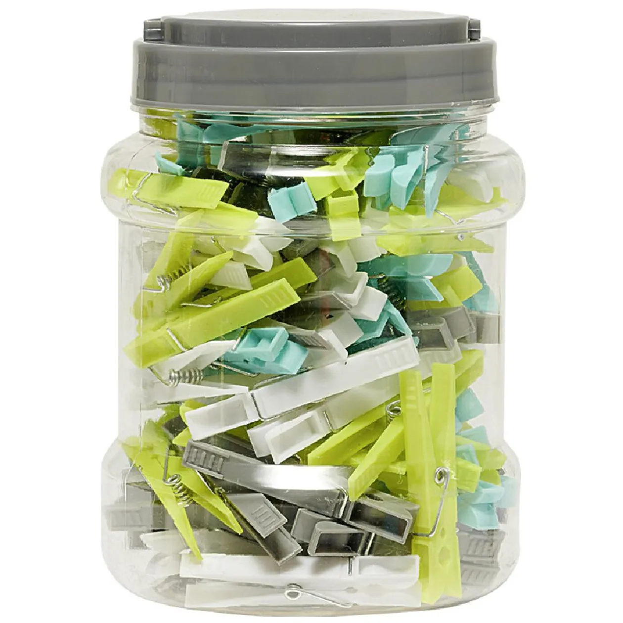 Lot de 100 pinces à linge et son pot de transport avec anse.