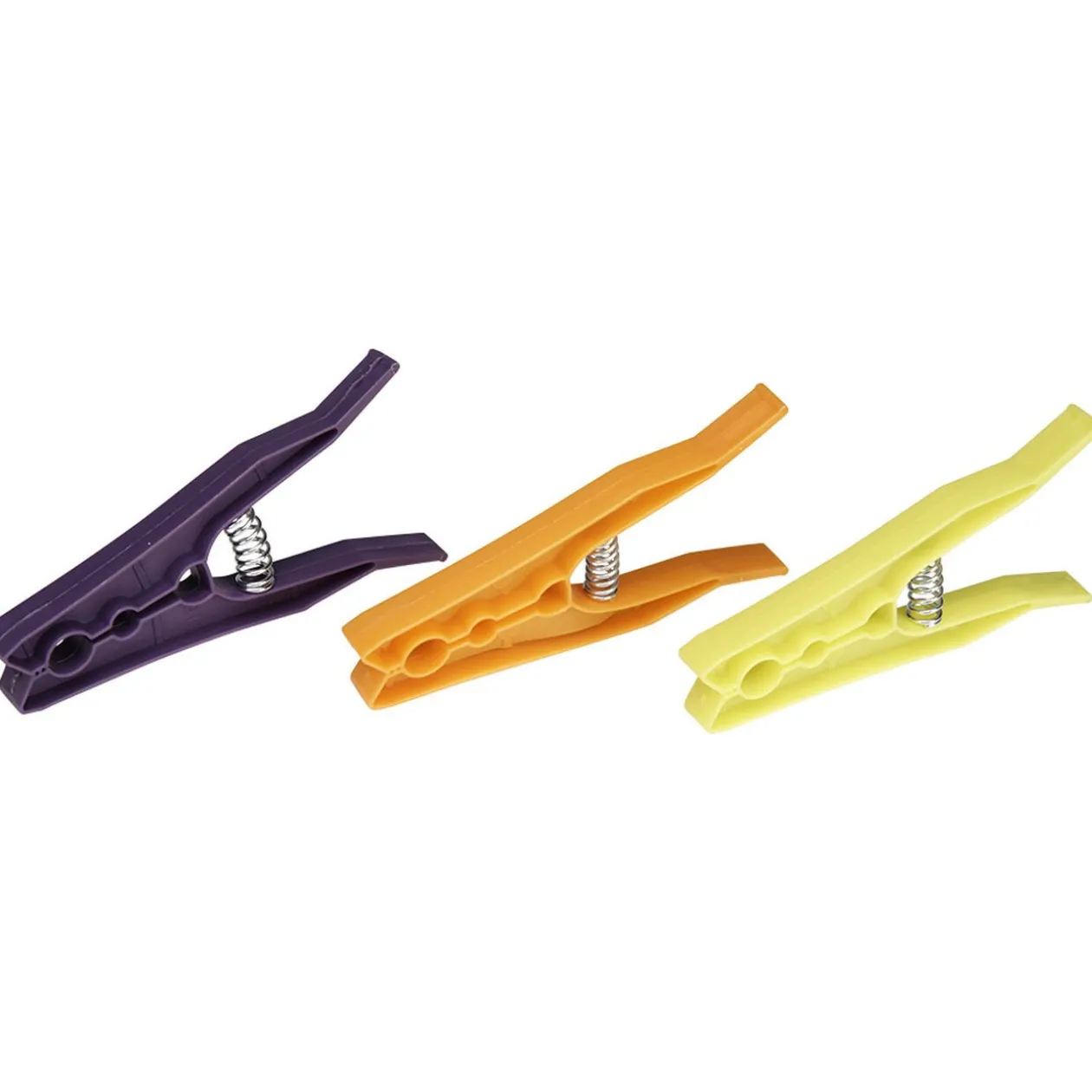 Lot de 30 pinces à linge de couleur verte, orange et violette avec panier muni d’un crochet pour le suspendre à votre étendoir, fil ou à une branche.