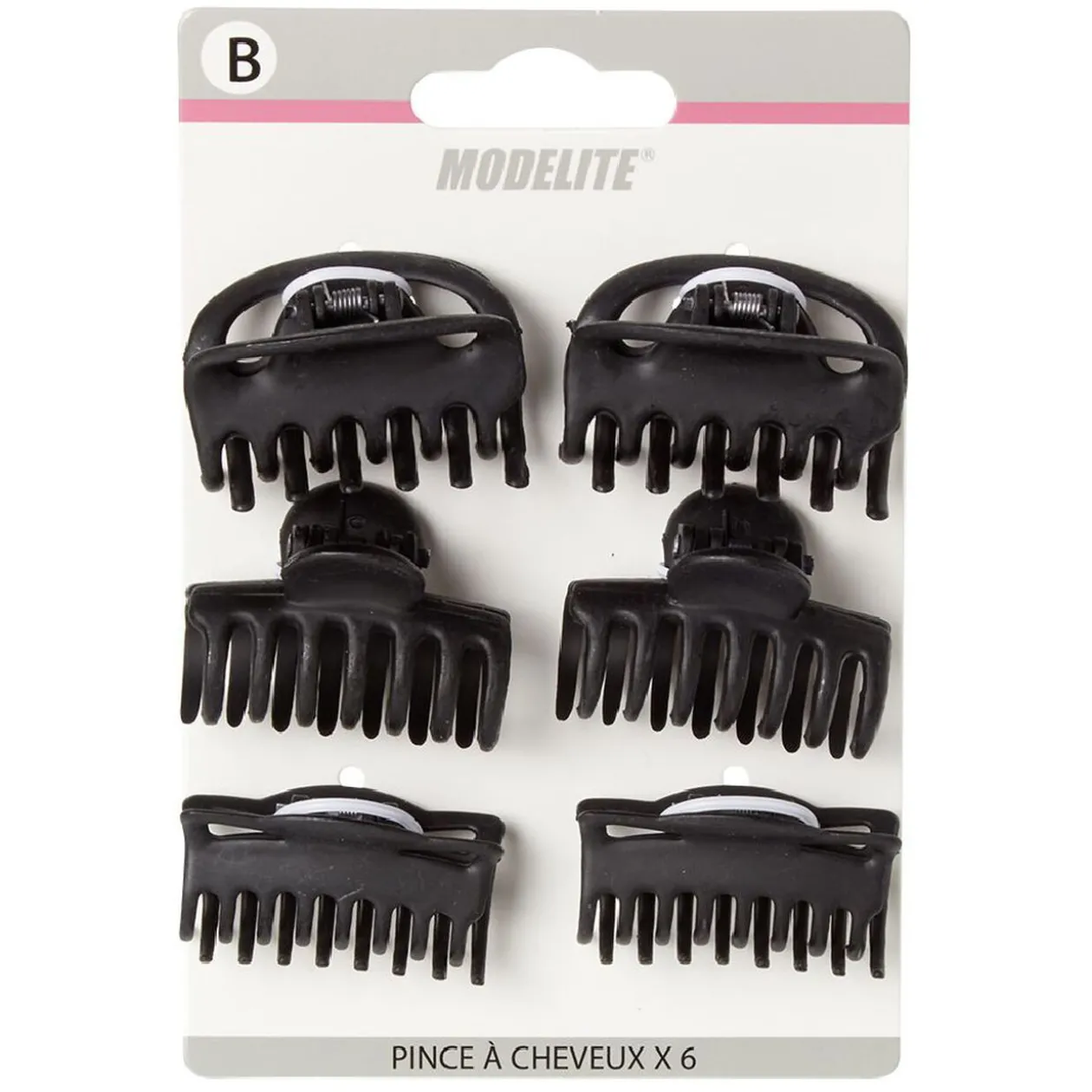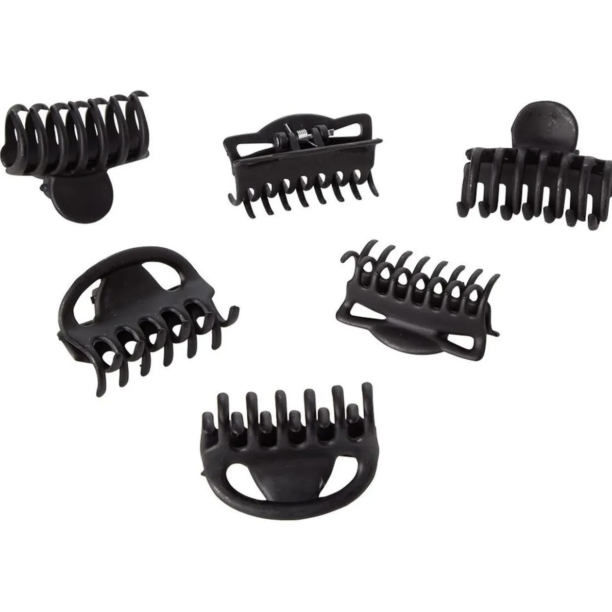 Lot de 6 pinces crocodiles en plastique uni noir mat. Longueur : 4 cm