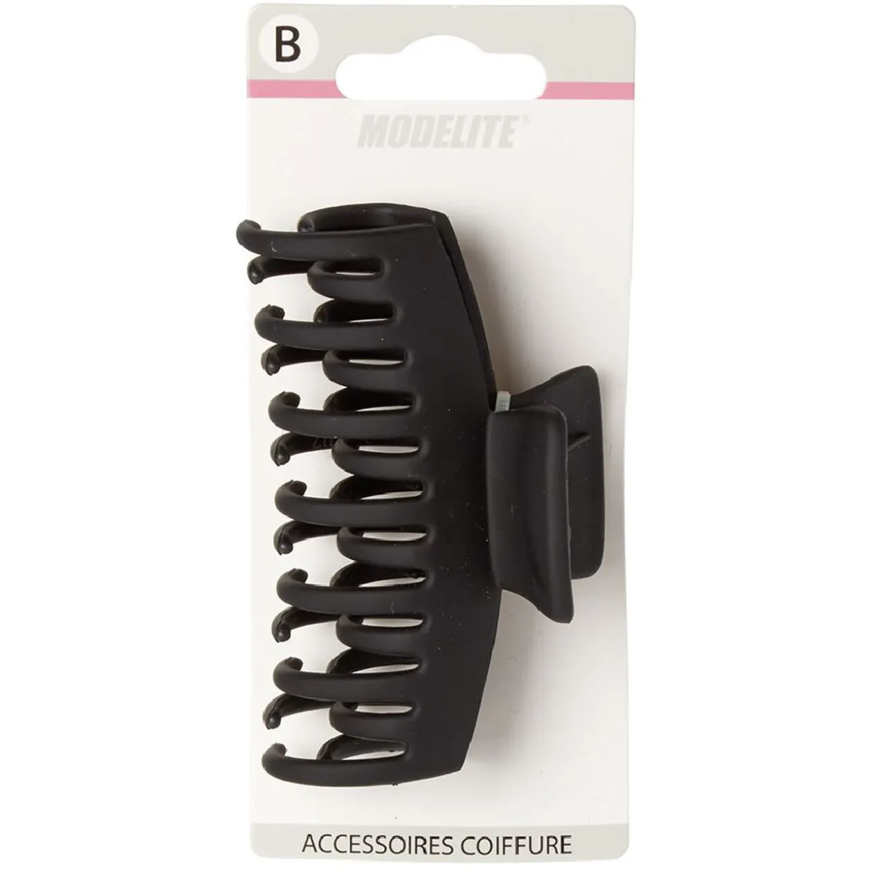 Pince crocodile en plastique uni noir mat. Longueur : 9 cm