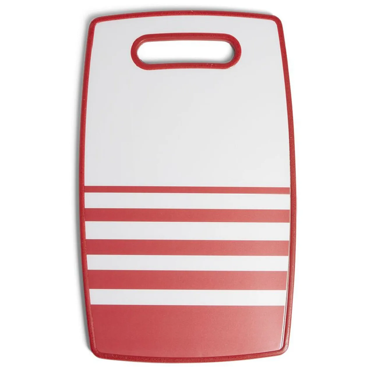 Résistante et facile d’entretien, optez pour cette planche à découper rectangulaire aux bords arrondis blanche et rouge. Indispensable dans la cuisine, pour préparer et découper vos aliments sans abîmer le plan de travail.