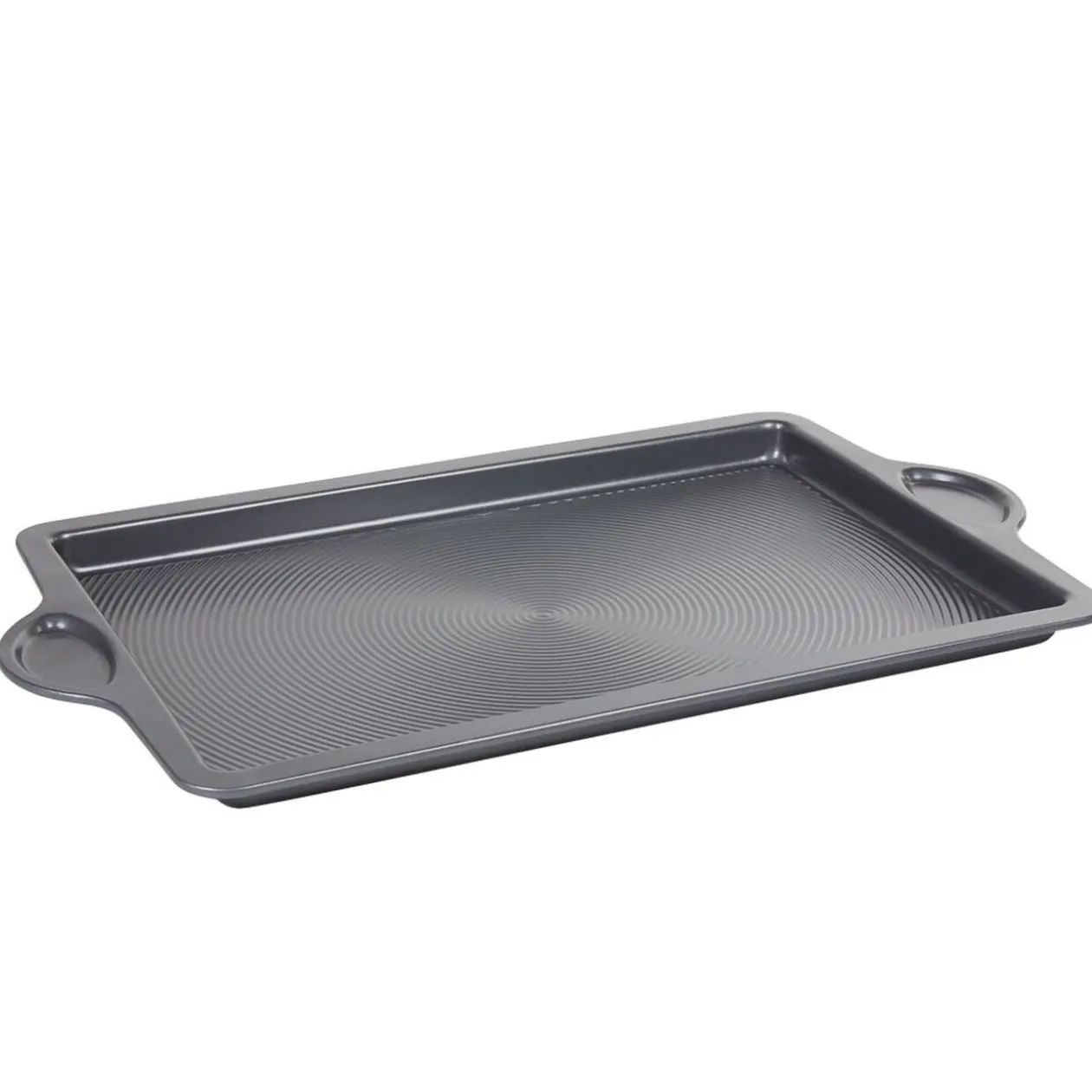 Pratique, cette plaque de cuisson en métal gris comprend un revêtement à fond texturé pour un démoulage facile de vos pâtisseries