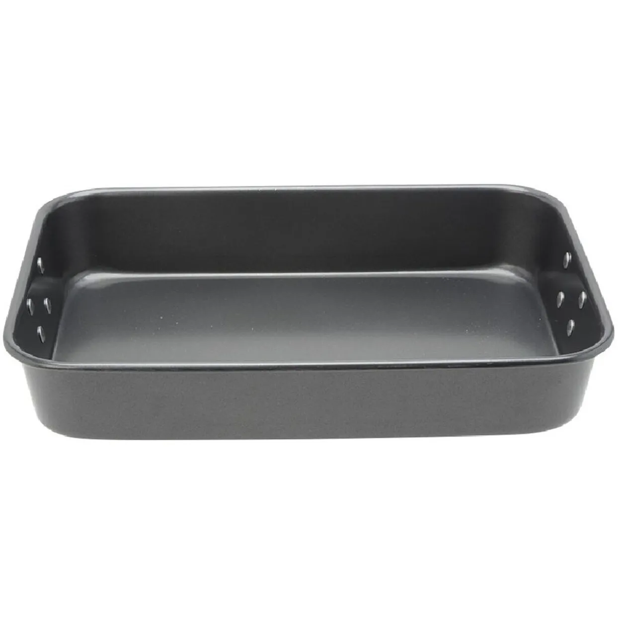 Plateau rectangulaire XXL gris en acier antiadhésif et inoxydable.