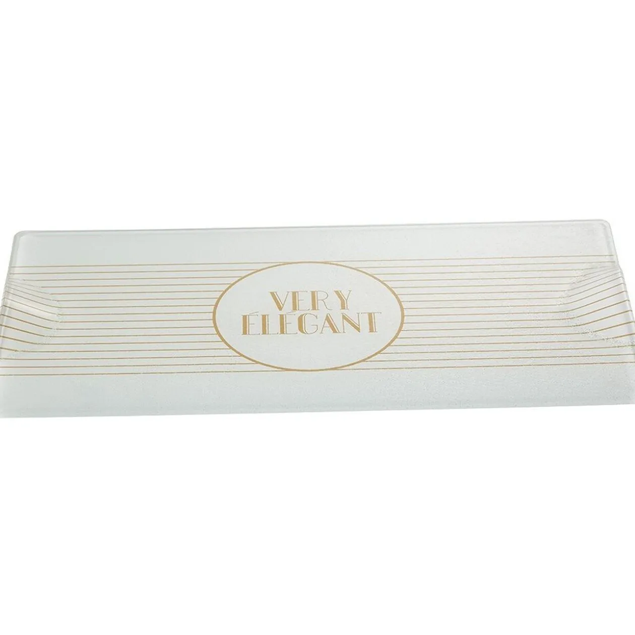 Servez le dessert à vos invités en le disposant sur ce plat rectangulaire en verre. Sa couleur blanche lui confère un côté élégant. Ce plat ne dispose pas de bord, ce qui fait tout son charme, mais deux côtés sont dotés d’une partie cambrée prévue pour porter facilement le plateau. Sur ce plat, vos desserts colorés seront plus remarquables.