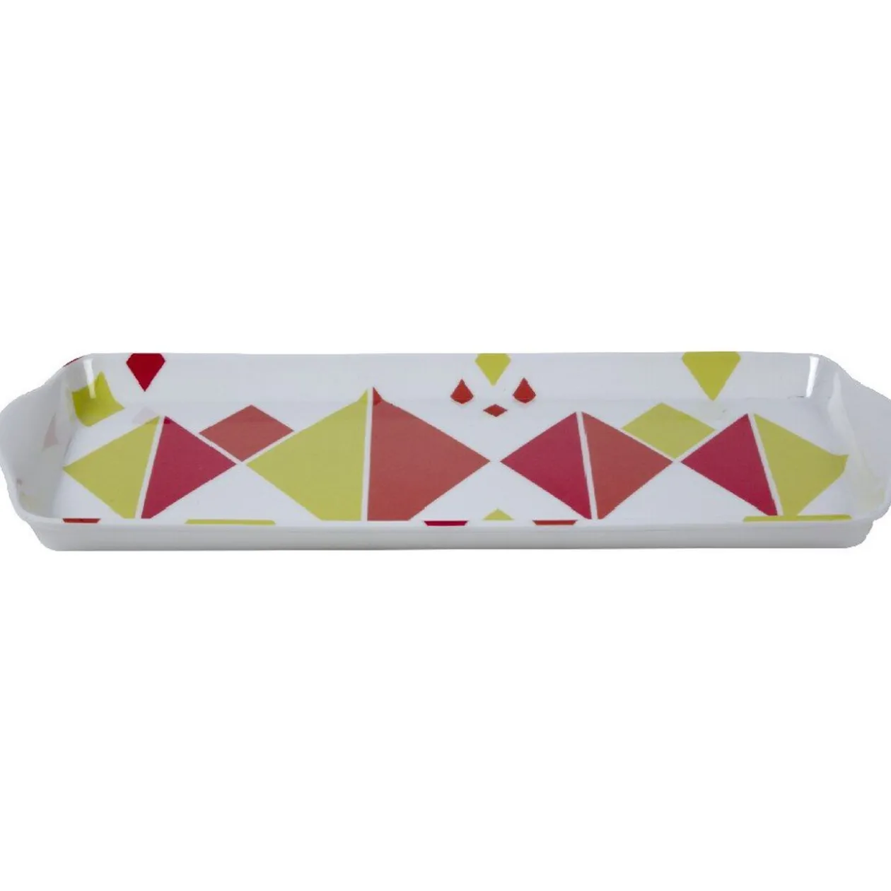 Plateau à cake motifs losanges, dim. 38×16,5 cm, plastique mélaminé.