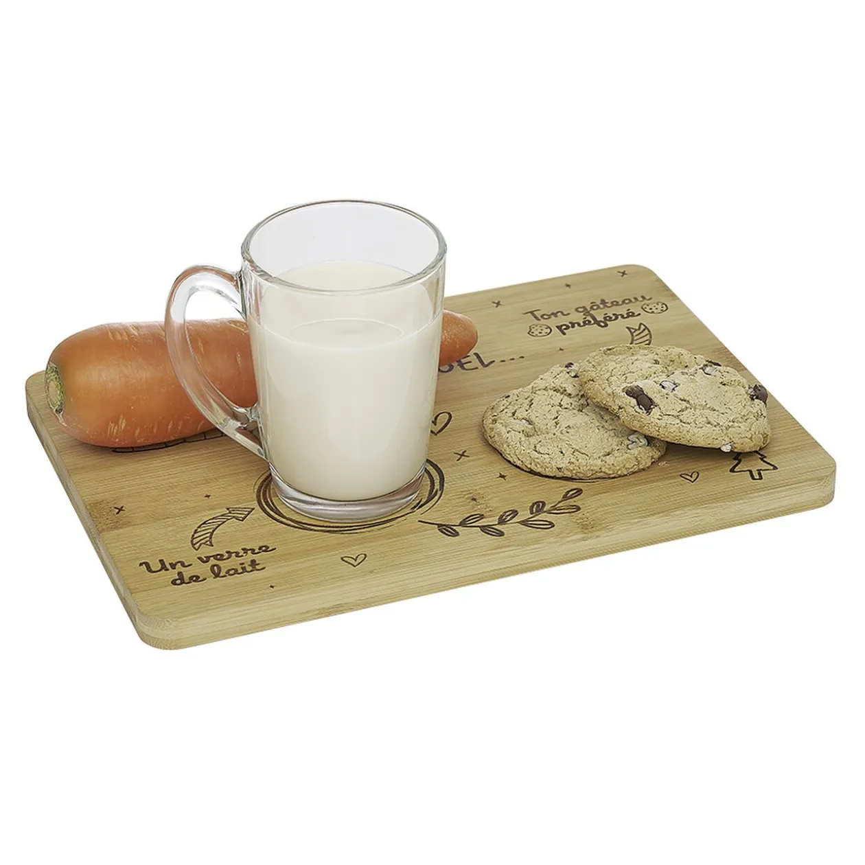 Plateau en bambou avec message gravé destiné au Père Noël et à ses Rennes. Décoratif et parfait pour installer la magie de Noël dans votre intérieur!