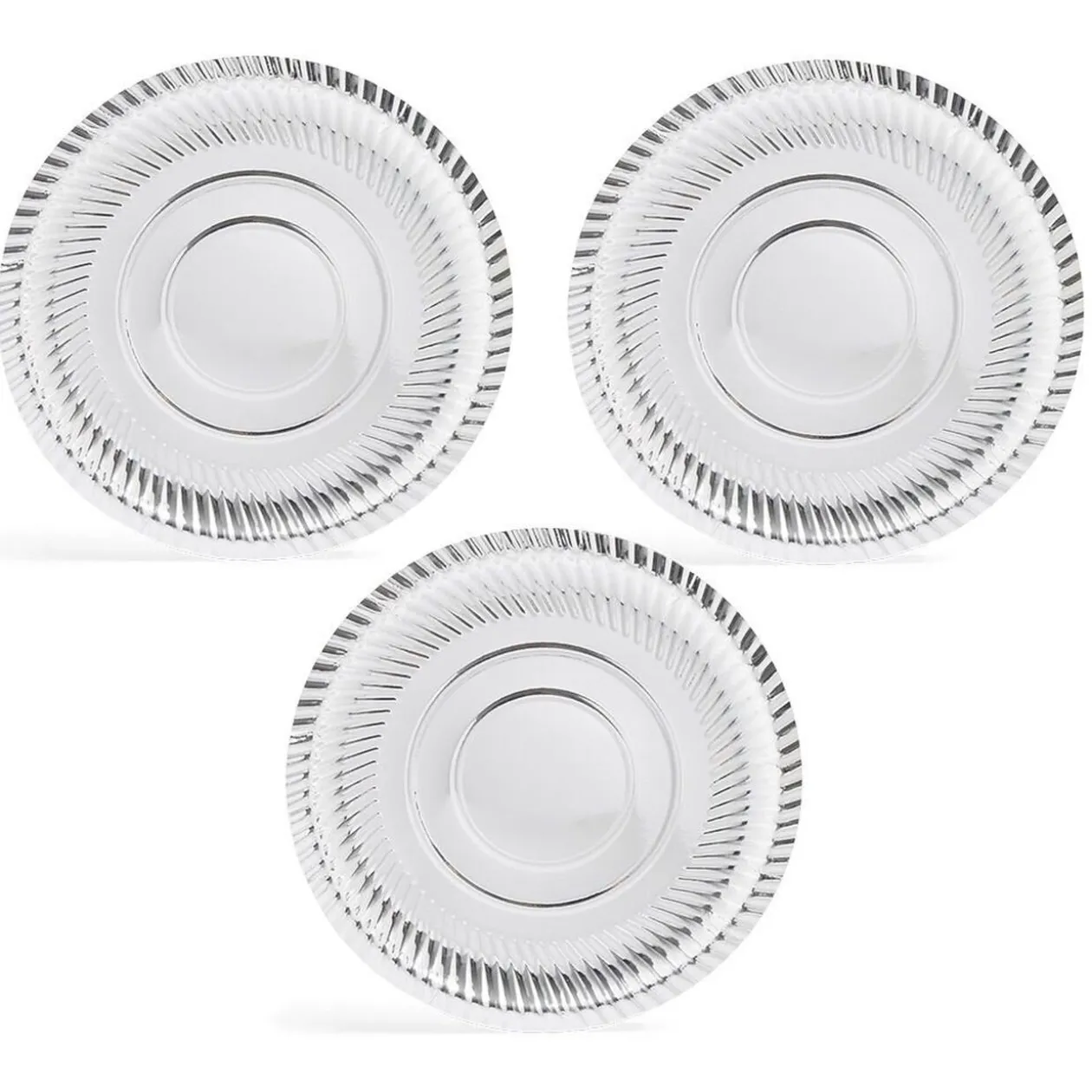 Pour présenter aisément vos aliments lors de votre repas de fête, optez pour ce lot de 3 plateaux de présentation en carton de 33cm diamètre et de coloris gris argenté.