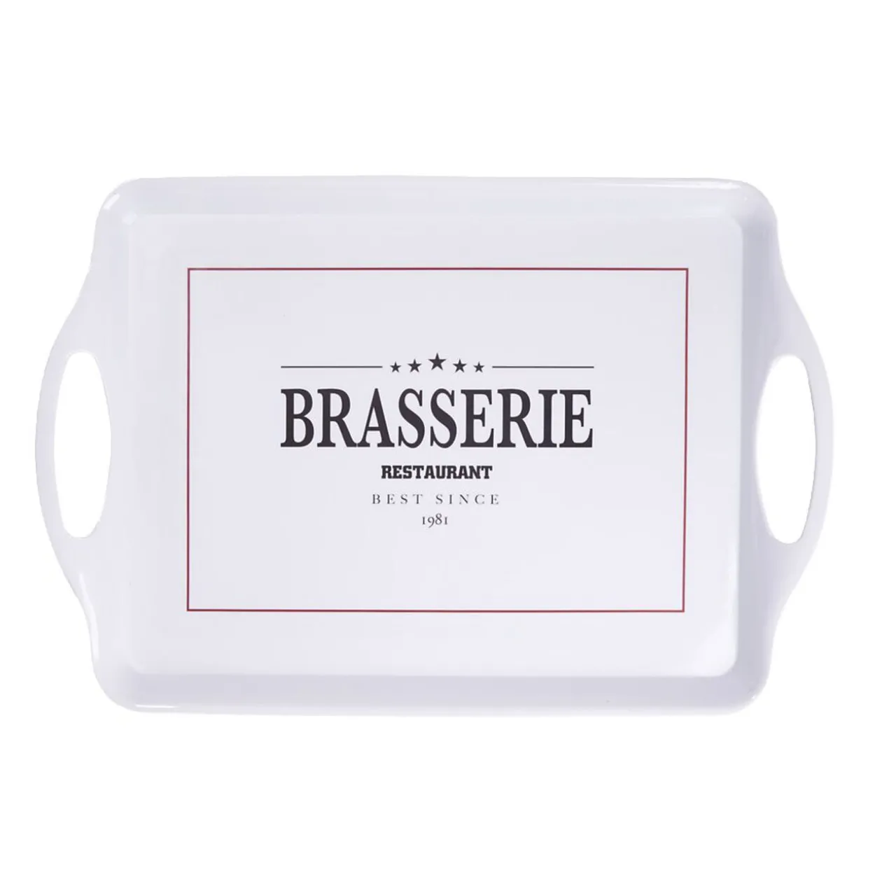 Découvrez ce plateau rectangulaire brasserie, avec un liseré rouge qui rappelle les établissements de restauration traditionnels.