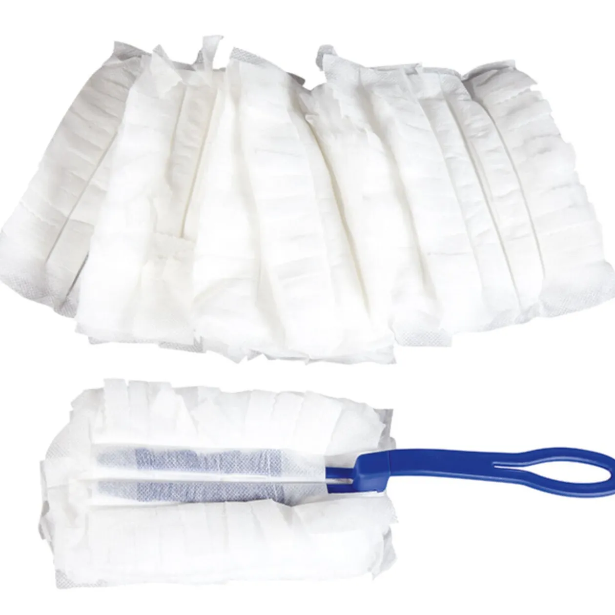 Plumeau très doux qui convient aux objets fragiles. Pliable, L. 29 cm, plastique. 3 recharges, synthétique.