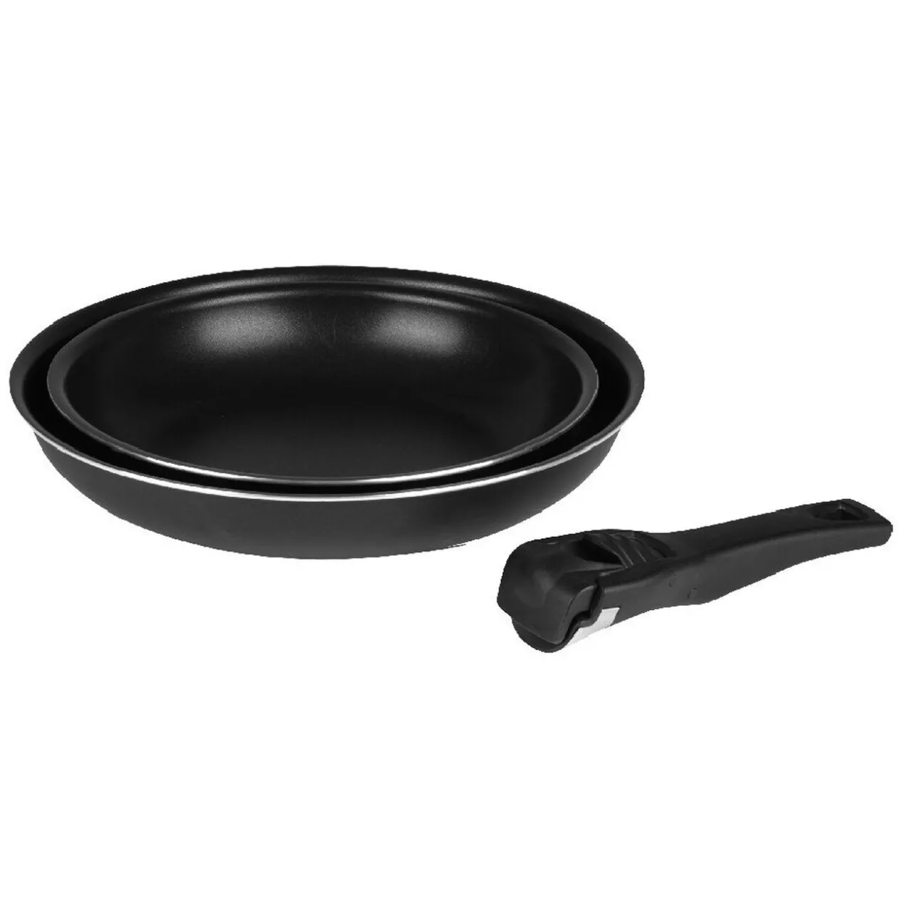 Poêle aluminium x2 poignée amovible, Ø 24 et 28 cm, tous feux dont induction.