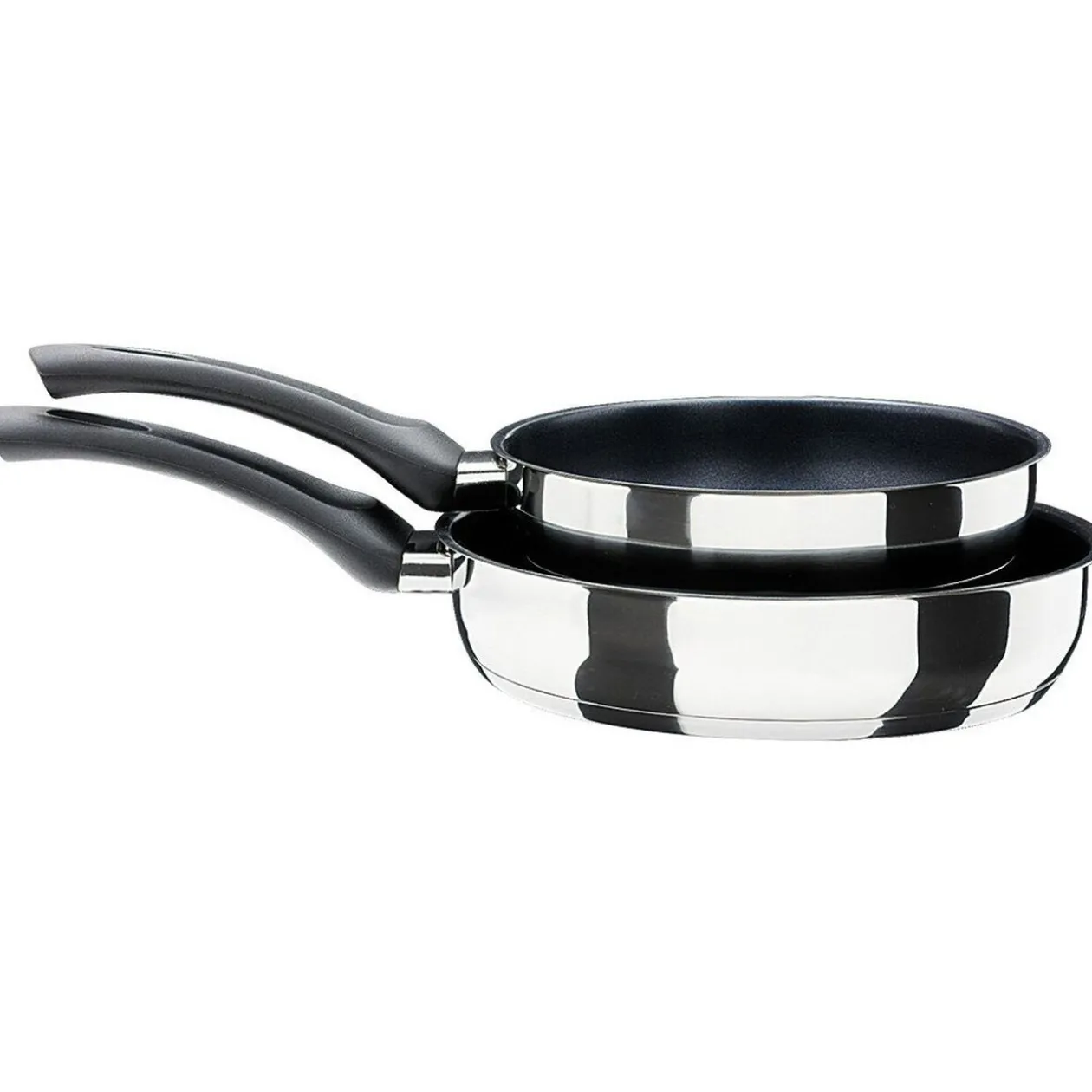 Lot de 2 poêles en acier inoxydable pour une excellente diffusion et répartition de la chaleur.
