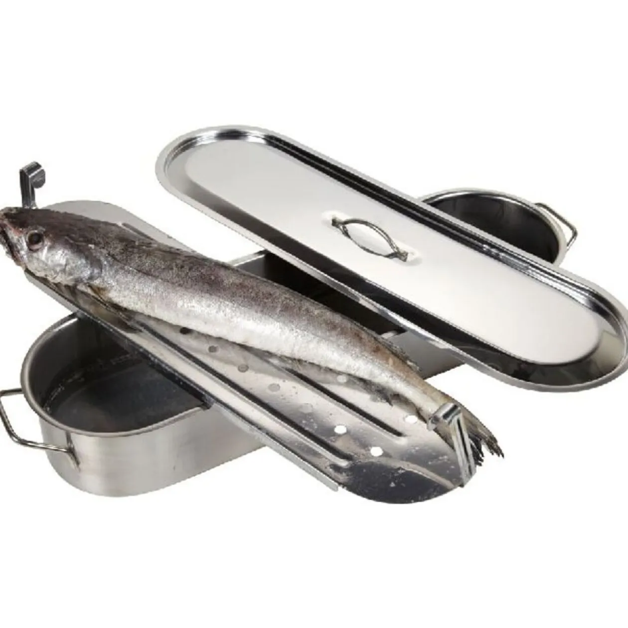 Poissonnière, dim. 61,5x19x10 cm, inox, poignées métal, tous feux même induction, lave vaisselle.