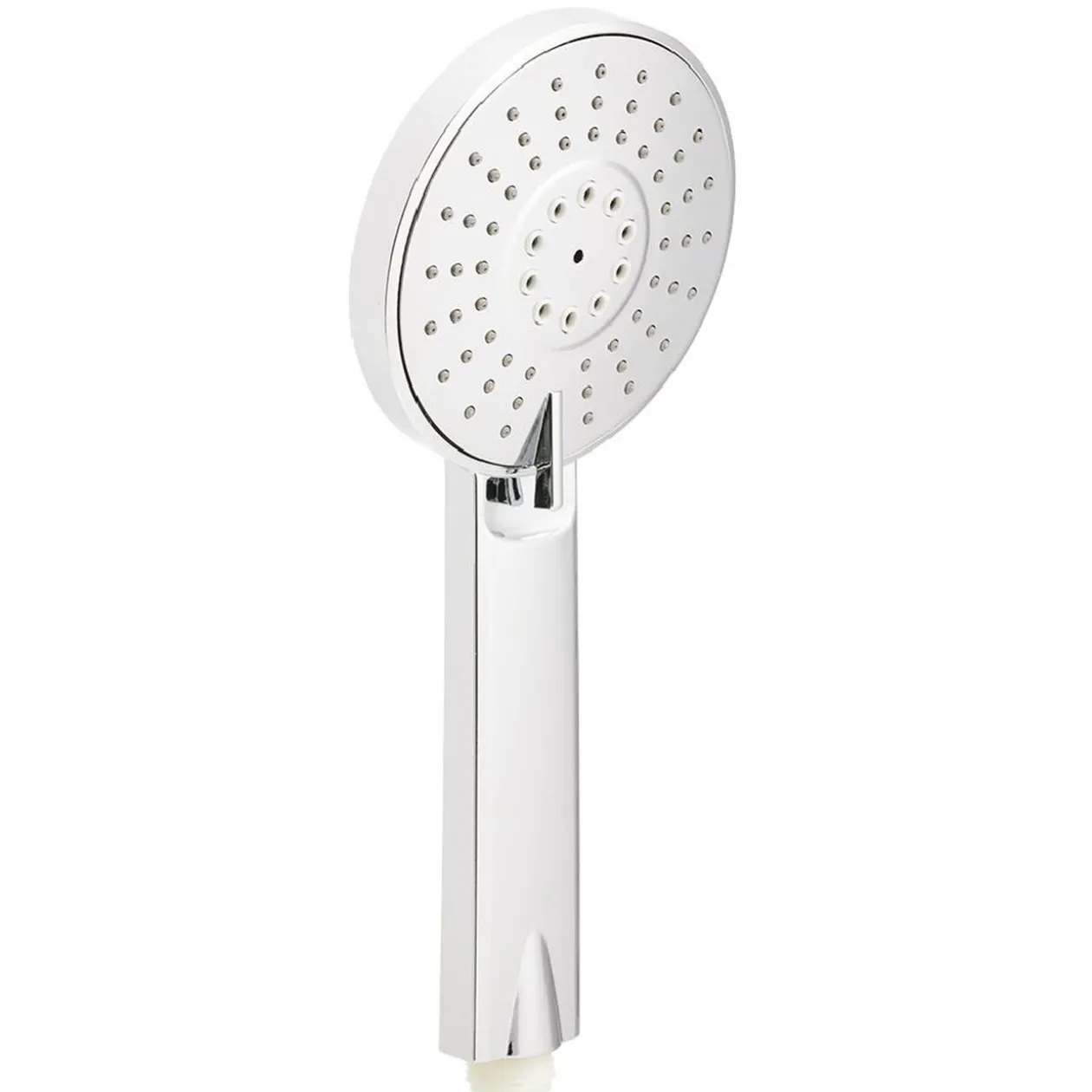 Pratique, ce pommeau de douche à économie d’eau, en plastique gris effet miroir, est muni de 2 fonctions de jets.