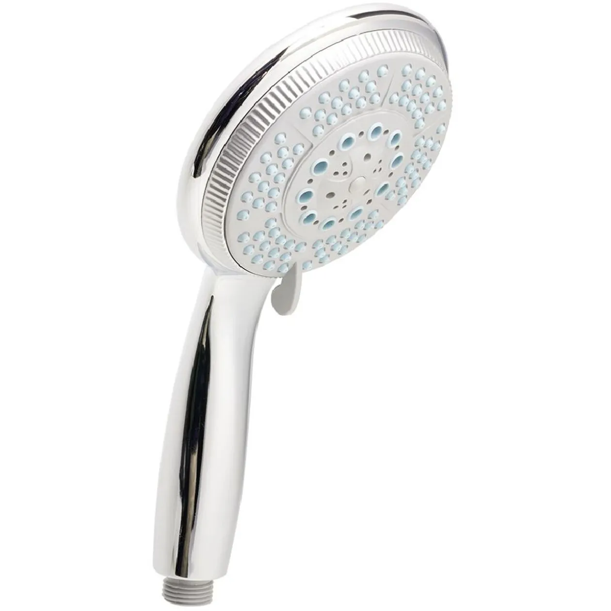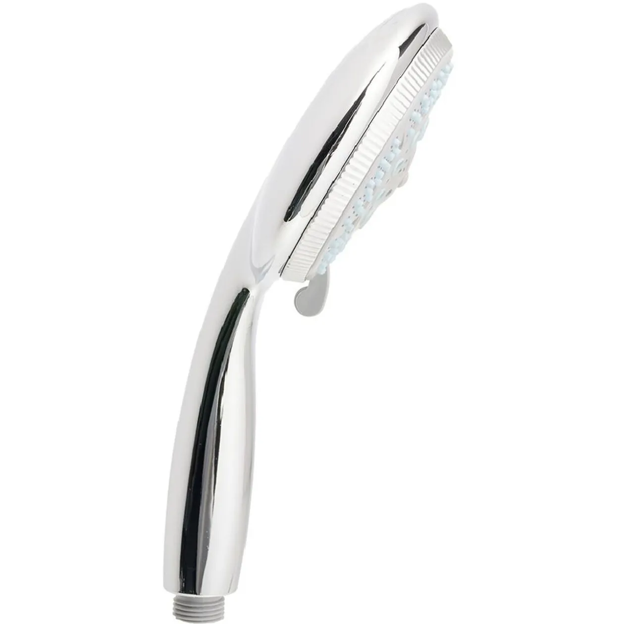 Pratique, ce pommeau de douche en acier gris argenté est muni de 5 fonctions de jets.