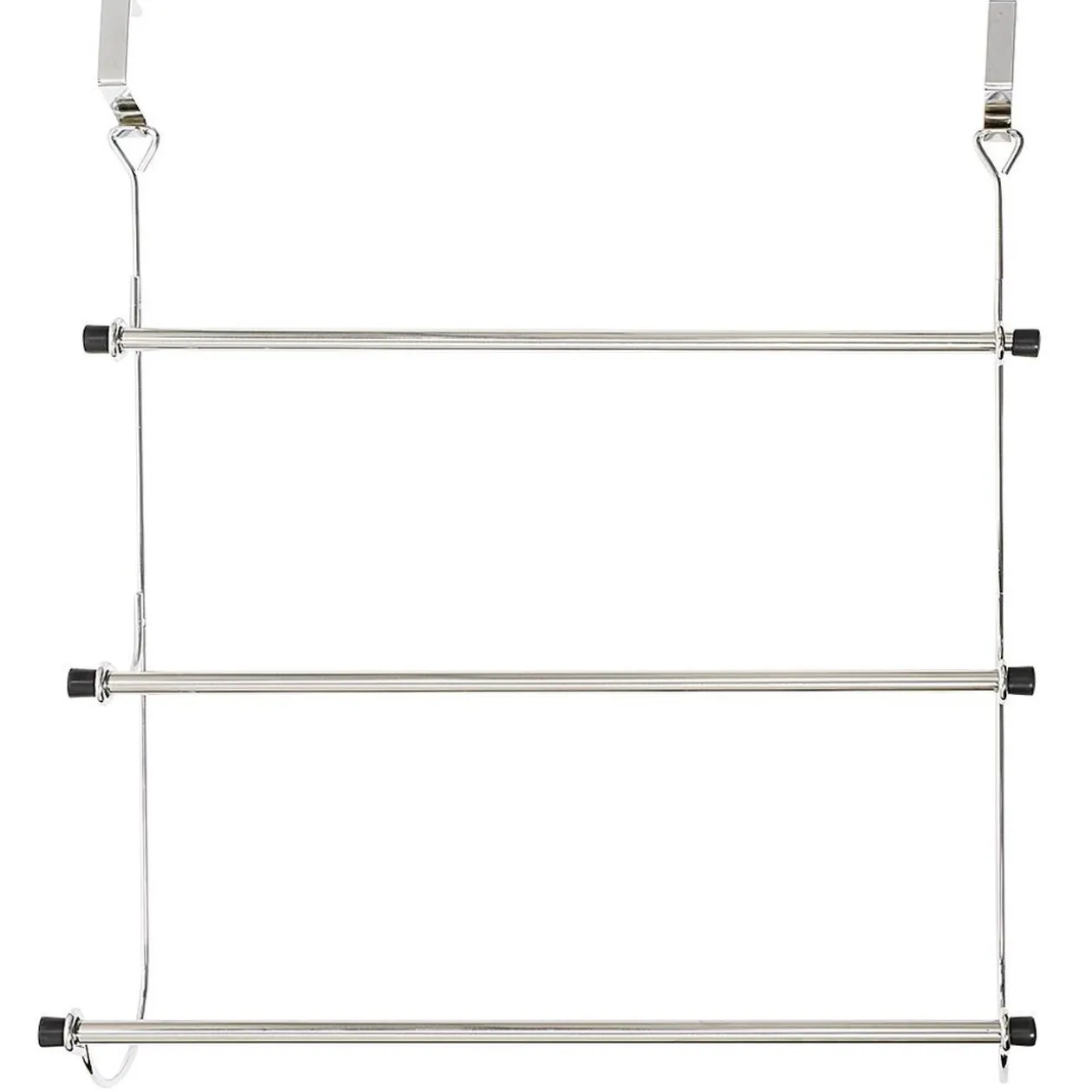Porte-serviette de porte à 3 niveaux en métal chromé.