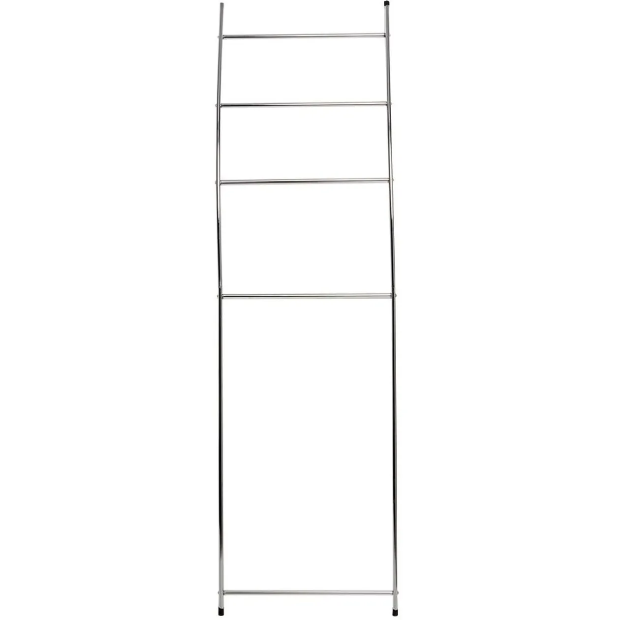 Porte-serviettes échelle en métal au design légèrement arqué, pratique et facile à installer dans tous les styles de décor.