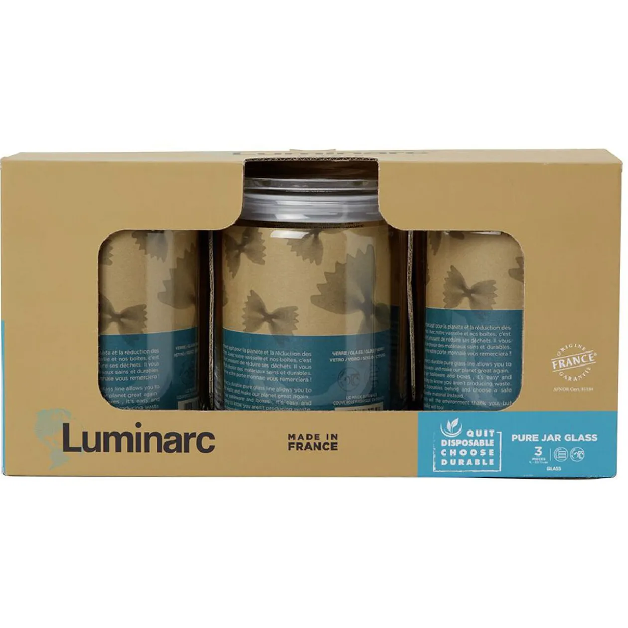 Lot de 3 pots en verre avec couvercle, idéal pour conserver vos aliments plus efficacement.