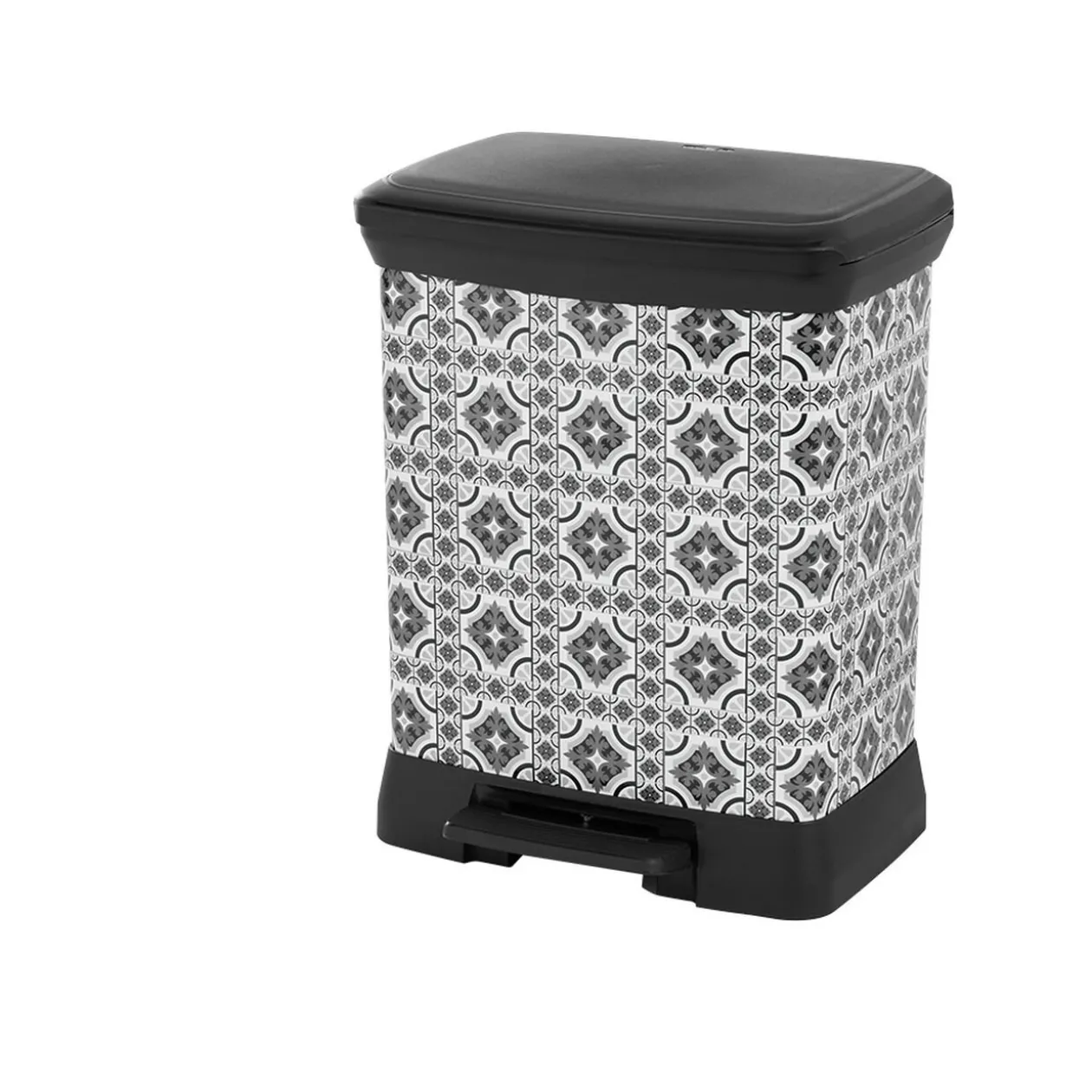 Poubelle à pédale en plastique aux motifs carreaux de ciment d’une contenance de 30 L.