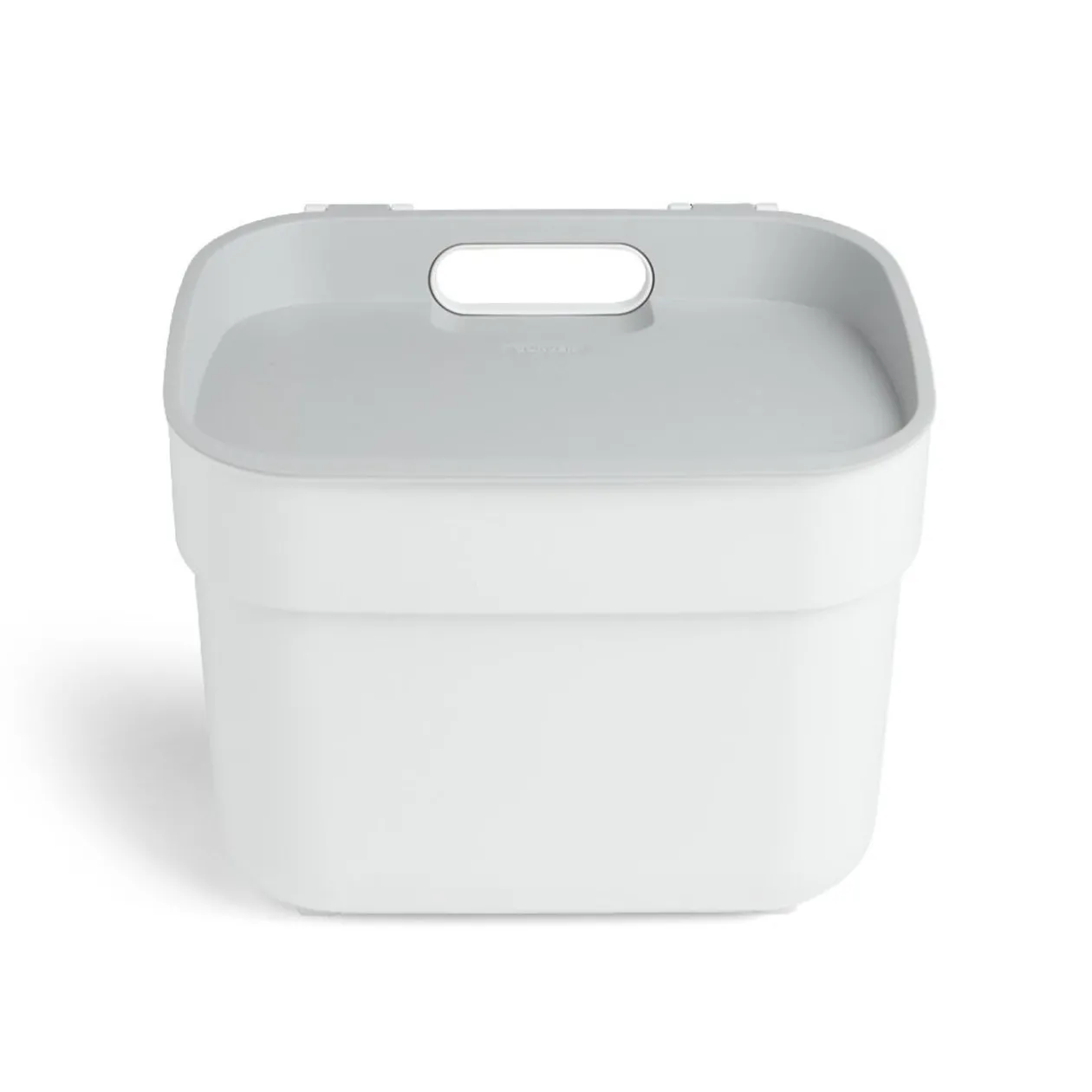 Pour un usage domestique ou au bureau, triez vos déchets avec cette poubelle blanche à couvercle gris clair.