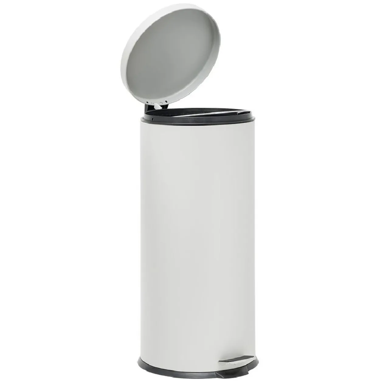 Poubelle à pédale en métal blanc au design intemporel et capacité de 30l.